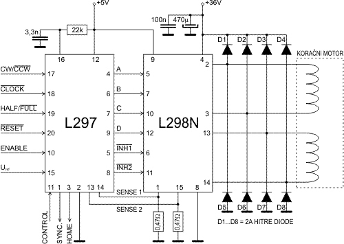 integriranega vezja L297, ker so signali za krmiljenje bistveno enostavnejši