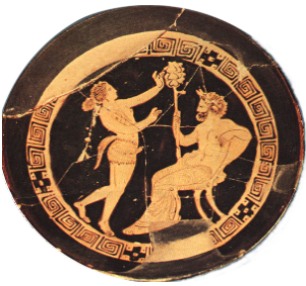 Dvospolnik združuje tako ženski kot moški spol v enem telesu (na upodobitvi vidimo združene moške in ženske atribute ter rep, simbol primitivnega, zgodovinsko izvornega). Dvospolnik steguje roki k drevesu življenja in spoznanja. Z levico gladi krošnjo s svojo ženskostjo in jo občuduje, desnica pa je v položaju aktivnosti želji po trganju rajskega sadeža. Rep, ki krasi telo Dvospolnika oziroma Hermafrodita, govori o njegovem živalskem izvoru in zakrnelosti. Telo je usločeno, kar govori o njegovem izjemnem naporu, saj vstraja v nenaravni, problematični pozi. Želje, posega v rajsko drevo, ne more uresničiti, razadi nestabilnosti. V nogag torej izgublja ravnotežje, ki se stopnjuje z njegovim naprezanjem. Zevs mu namreč pod nogami spodnmika prostor Podobi Zevsa na eni in Dvospolnika na drugi strani sta zamejeni v krožni prostor. »Krožnik« in neosrazmerni teži likov na njem zahtevajo vrtenje ter dinamiko podob na umetnini. Sedeči Zevs ter lovljenje nasprotnega lika pa pričajo o nedinamičnosti likov. Razvijajoči brst na drevesu bo dal v bodočnosti bistveno prednost Zevsovi zamisli, razmerje sil se bo spremenilo v njegovo korist. Hermafroditu se bo lahko v bodočnosti odrekel. Vrtilni moment, ki se skriva v krožni zamejenosti prostora bo Zevsa razbremenil, ko Dvospolnik dokončno pade, Zevs pa bo vstal iz prestola, ki ga bo tako simbolično prepustil svojemu nasledniku enospolnim ljudem (hčeri in sinu). Ljudje kot nova veja razvoja, ki jih simbolizira brst, so del drevesa, s tem pa samo drevo izgubi svoj smisel nedotakljivosti. Nova Eva in nov Adam tako lahko jesta z drevesa spoznanja, ker sta del drevesa samega imata tako visoko moralna načela, da ne bosta teh svojih pravic kršila. Ornament okrog upodobitve govori o petih razdobjih ter labirintih, ki so pred ljudmi, da dozorijo po Zevsovi zamisli