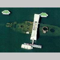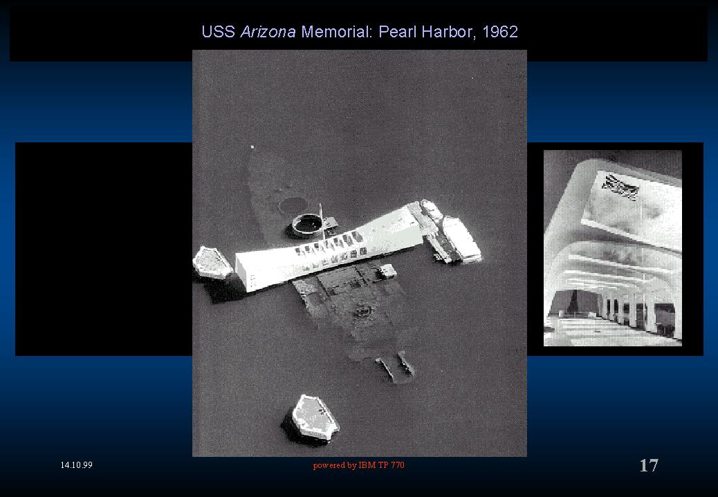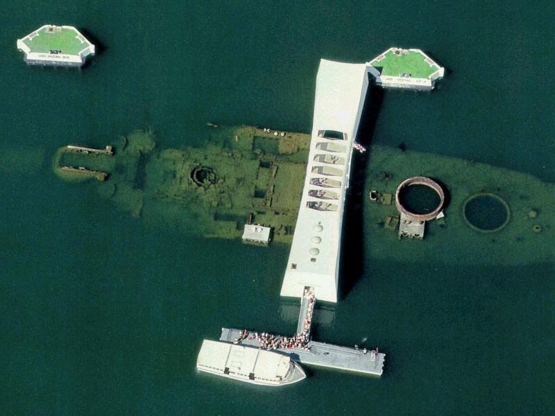 17. USS Arizona Memorial: Pearl Harbor, 1962, zracni snimak.