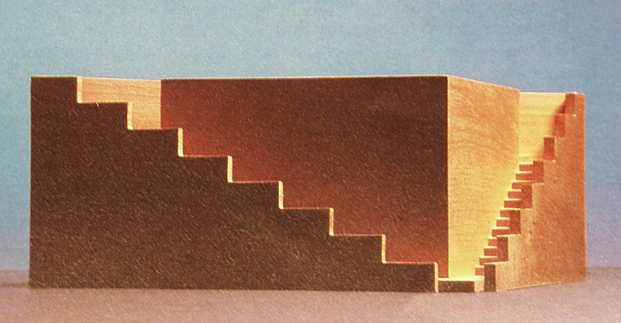 28. Monumento di Torrile, Parma: Paulo Zermani, 1990., maketa, pogled na stubišta.