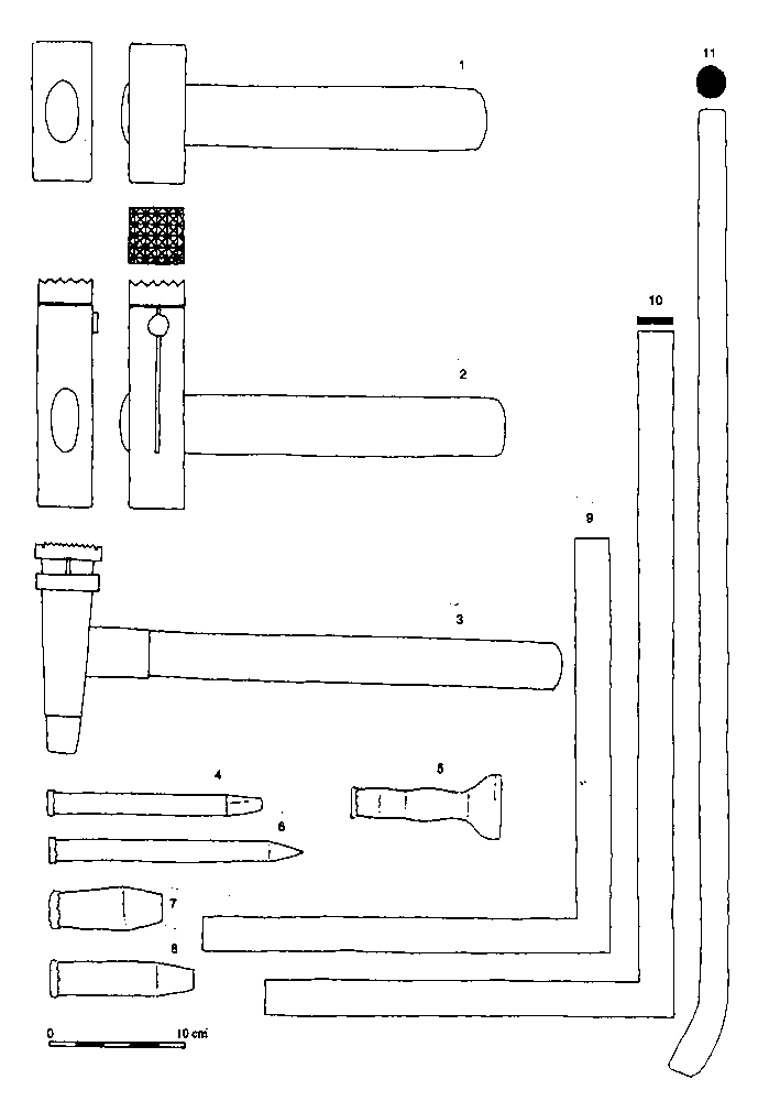 The paper and the survey of tools for the quarrying and dressing of the stone of Serrenti has been carried out with the help of the following craftsmen: Giuseppe Medda (quarryman, b.1927), Erminio Putzu (stone mason, b. 1927), Pietro Tiddia (stone mason, b. 1929), and Antonio Argiolas (stone mason, b. 1938).