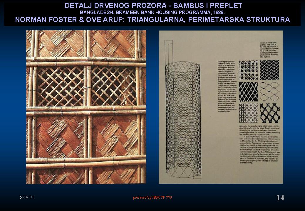 DETALJ DRVENOG PROZORA - BAMBUS I PREPLET, BANGLADESH, BRAMEEN BANK HOUSING PROGRAMME, 1989. NORMAN FOSTER & OVE ARUP: TRIANGULARNA, PERIMETARSKA STRUKTURA.