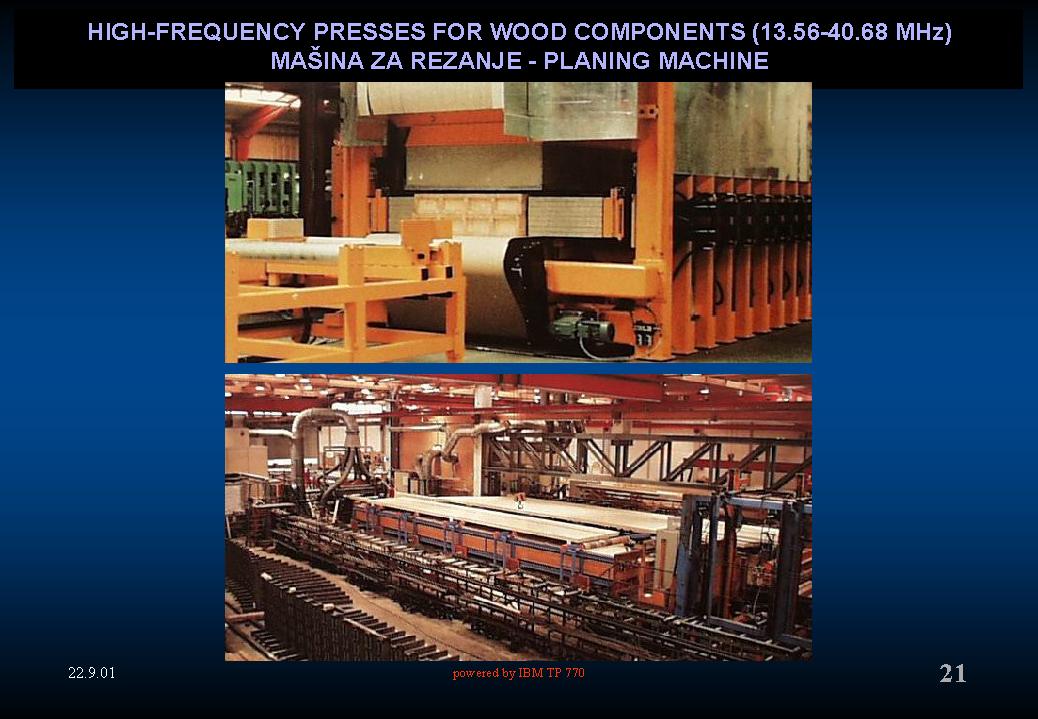 HIGH-FREQUENCY PRESSES FOR WOOD COMPONENTS (13.56-40.68 MHz), MAŠINA ZA REZANJE - PLANING MACHINE.