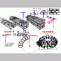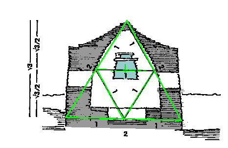 Proporcijski sistemi, ki nastopajo, so rast kroga v kvadratu (koren iz dve) in koren iz tri polovic (ki ga preprost graditelj konstruira s pomočjo treh enako dolgih palic).