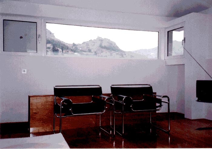 Vidikovac , observation room, belvedere on the 4.level , is the last phase in the growing process of this house. It is made with an ambition to mark nowadays (of course available) circumstances and possibilities in construction. In function it serves as studio and sitting room. Two Wassily chairs there reminds me on my work in the Marcel Breuer's office in New York in the 1972.