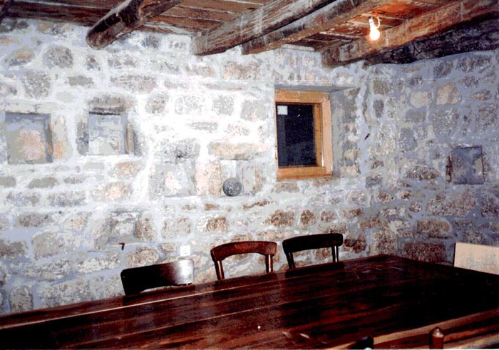 Podmornica (Submarine) ex storage space with stone walls, old wooden beams and boards , new ground concrete floor and large nutwood table, is dining room now. It is dedicated to the first generations of "stone" builders, to our grandparents. Name is related to the position of depression comparing to the entrance, and also its maritime feeling might be connected with my grandfather's ten years service in the "Franz Joseph Navy".