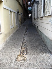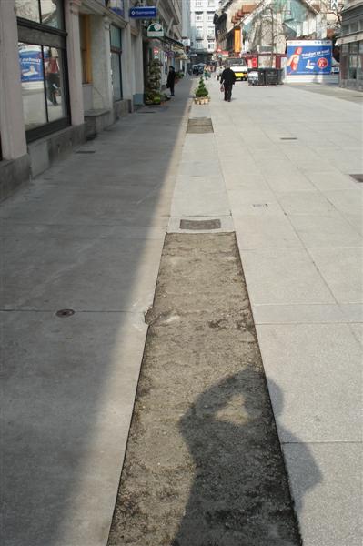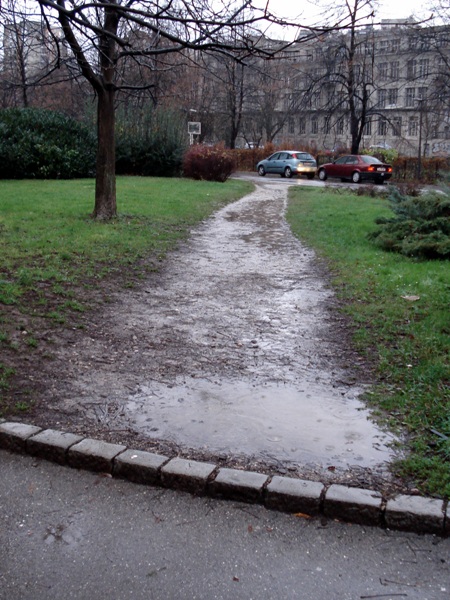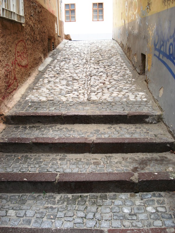 | Steza med hišama na Poljanski 9 in 11 je hudo potrebna popravila. Poleti 2009 tlakovano. |