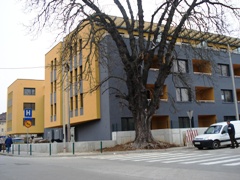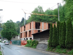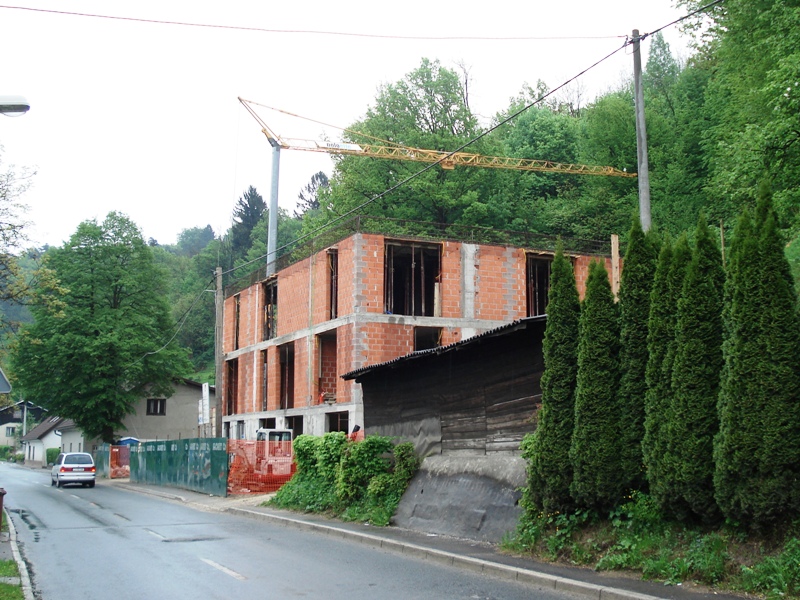 | Na mestu dveh starih hiš ob Hradetskega cesti so v letu 2008 začeli graditi Hospic. |