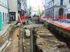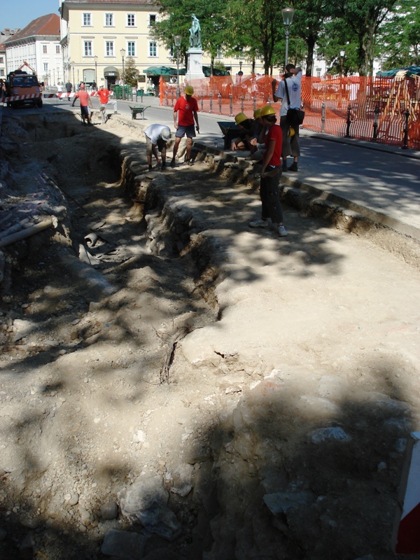 barvno nianso kock. Na Vodnikovem trgu so odkrili Klošterska vrata in v letu 2010 bogato ohranjen grob Auerspergov. |
