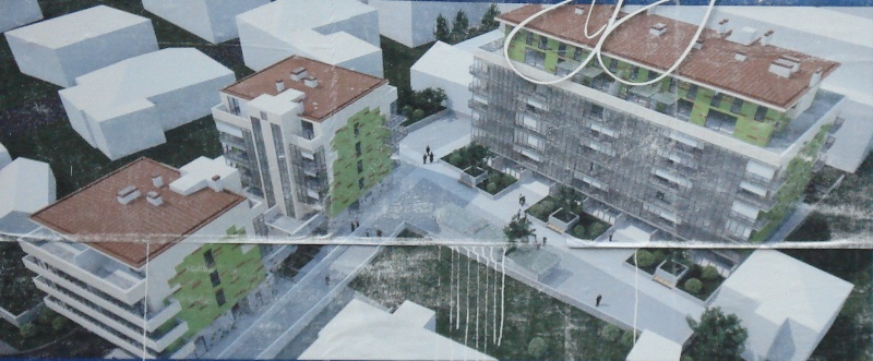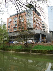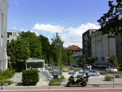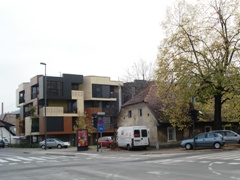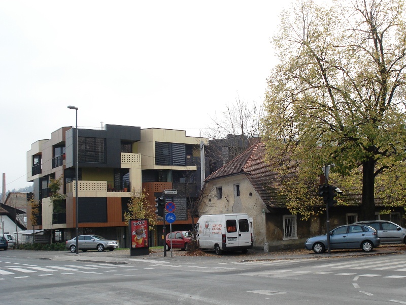 | Na Vodmatu, ob Bohoričevi ulici, je leta 2007-08 nastala nova soseska - razgiban blok s tremi nadstropji. |