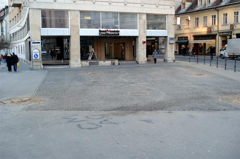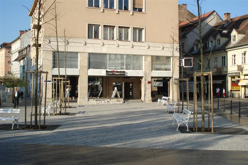 | Ploščad okoli Maksimarketa so v letu 2007 temeljito obnovili. |