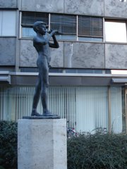 | Pred RTV SLO so fantka s piščalko začasno zamenjali s Styrio iz Gradza, kjer so v parku razstavili naš kip. |