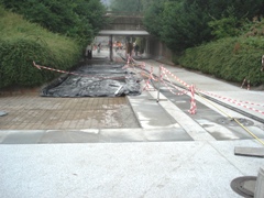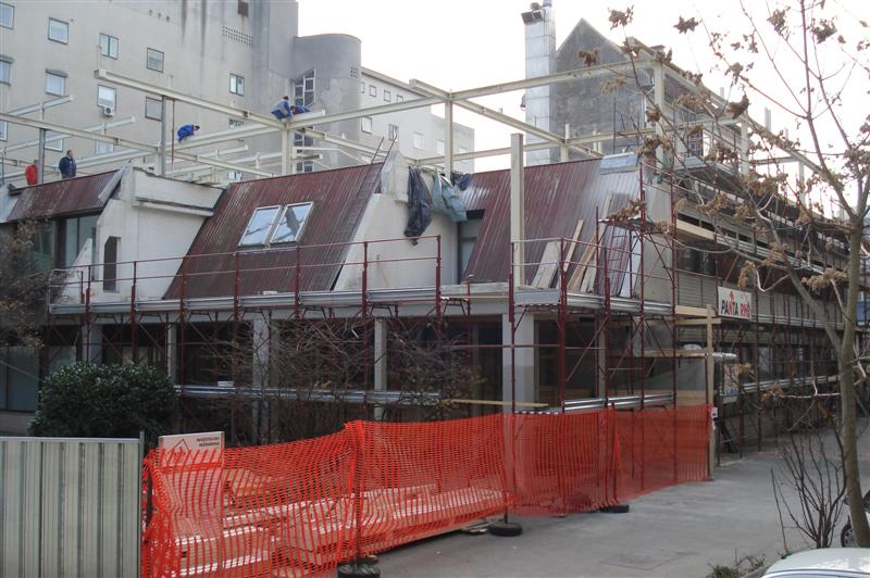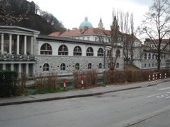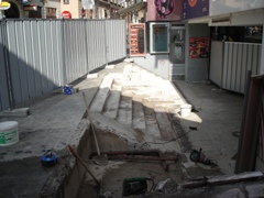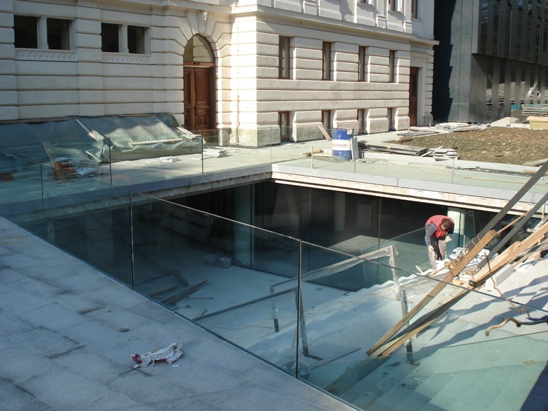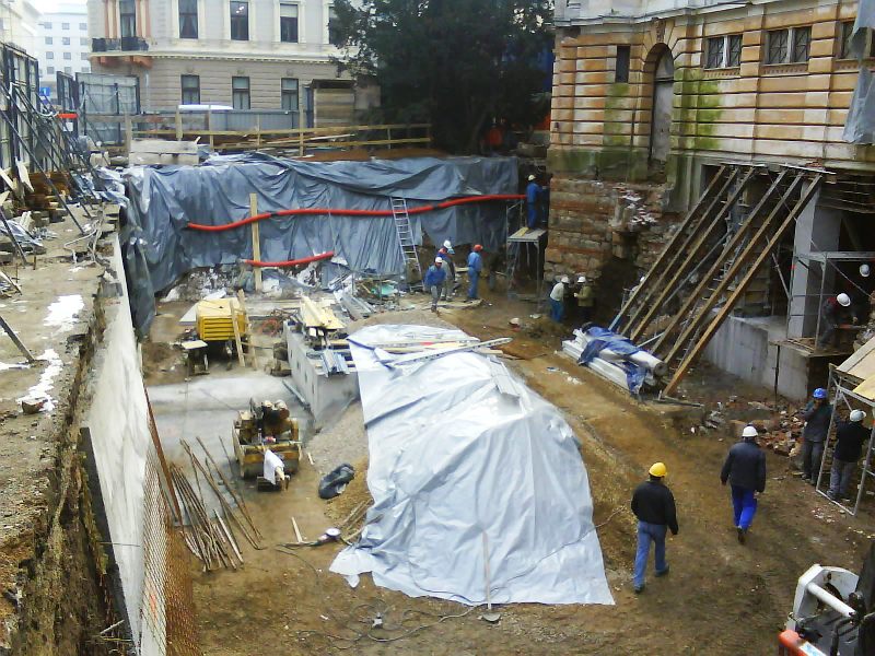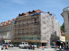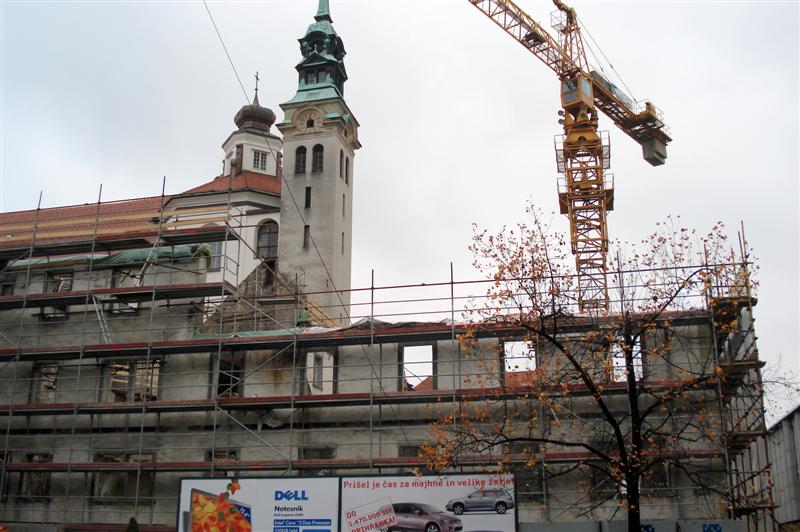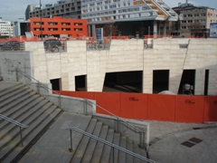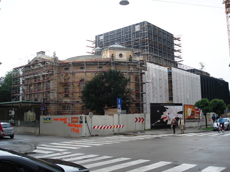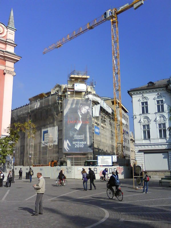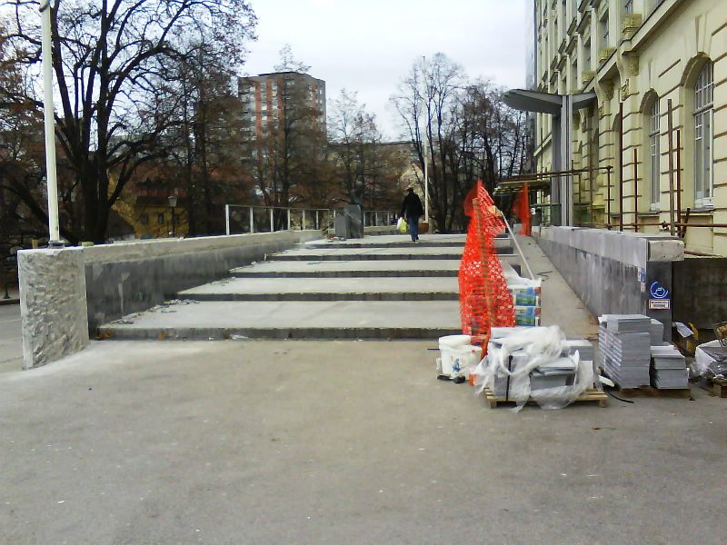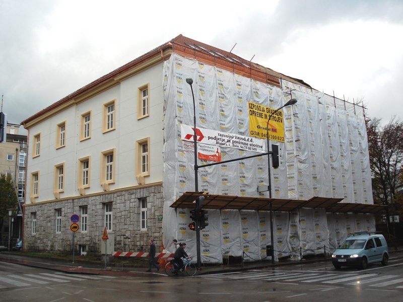 | V jeseni 2010 so pričeli obnavljati ne tako davno zgrajen vhod v Pravo fakulteto (bivša tiskarna) |