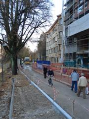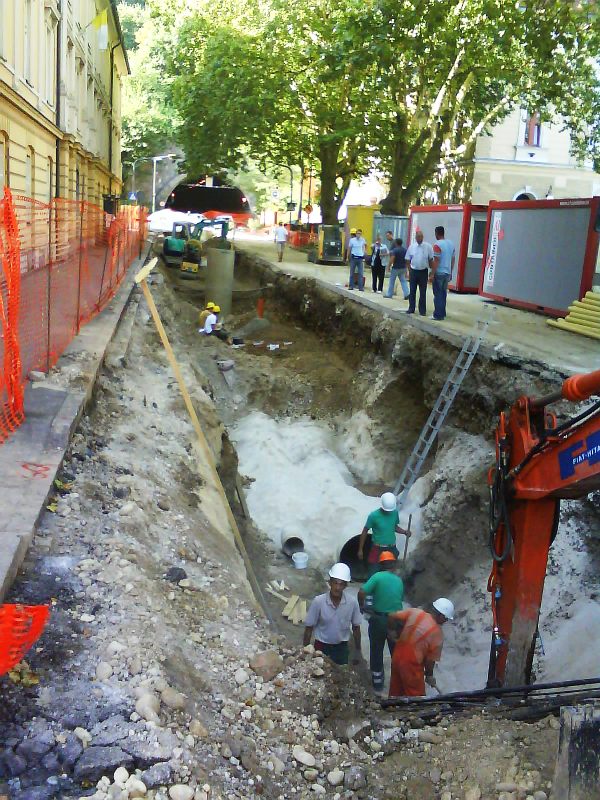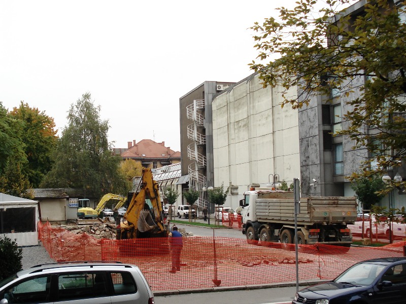 | Ob Njegoševi cesti nasproti UKC so leta 2007 skopali ogromno gradbeno