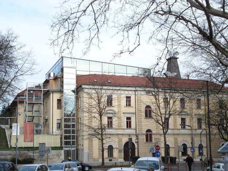 | Bivšo Triglavsko restavracijo so preuredili za potrebe sodišča, leta 2007 pa so ga še nadzidali. |