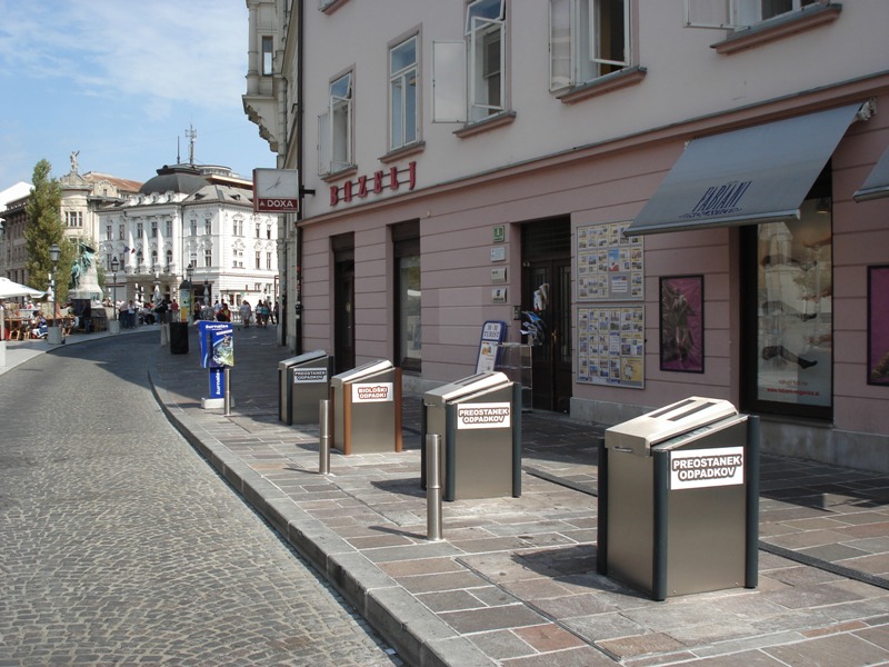 revolucije, Trubarjevi 19 (samo za ločene odpadke), Cankarjevem nabrežju (samo za ostale in biološke odpadke) in Levstikovem trgu. V
