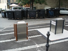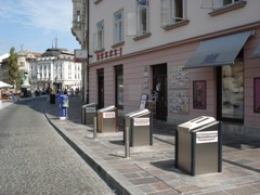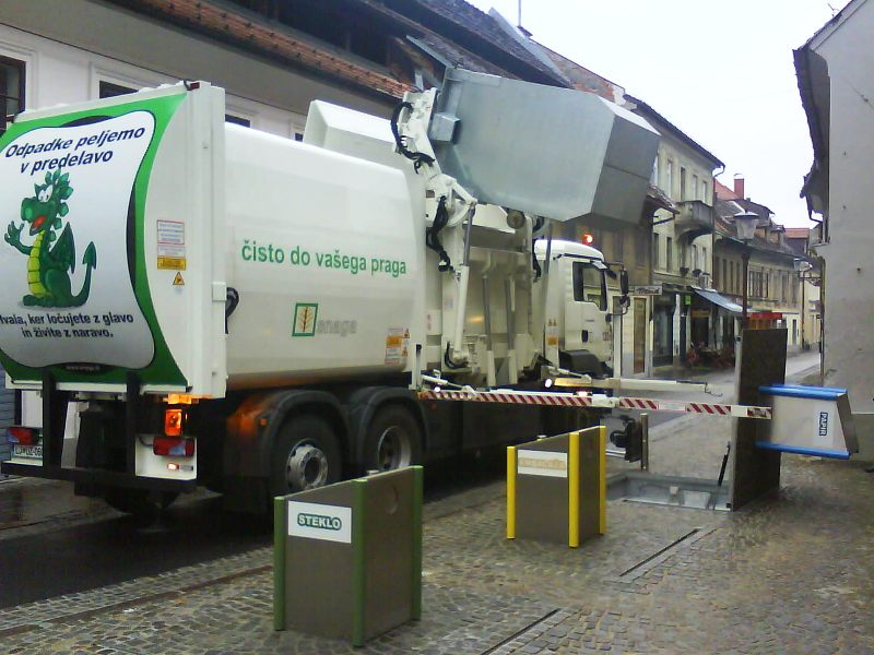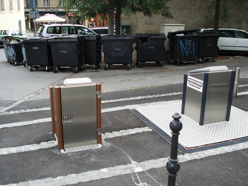 zavzemajo dragocen prostor. V letu 2007 so jih zgradili na Cankarjevi 2 (na fotografiji jih zakopavajo), na Mali ulici (samo za ostale in biološke odpadke) in Rožni ulici, v letu 2008 na: