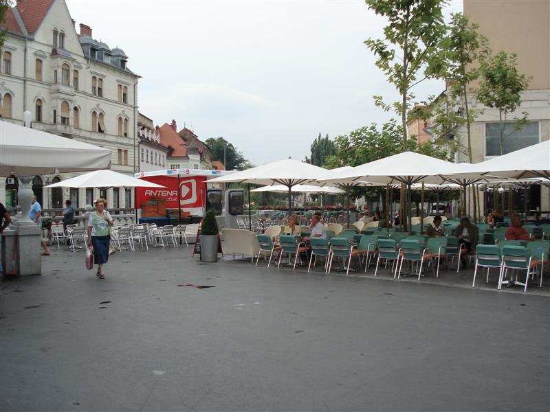 Žal je kavarna Tromostovje zasedla preveč javnih površin.