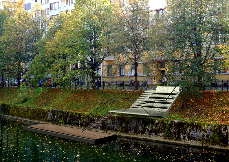| Na Petkovškovem nabrežju ob Ljubljanici so konec leta 2007 zgradili razgledno ložo. |