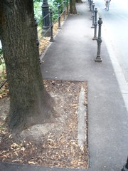 prenovi Poljanskega nasipa so ponekod še vedno manjkale rešetke okrog
