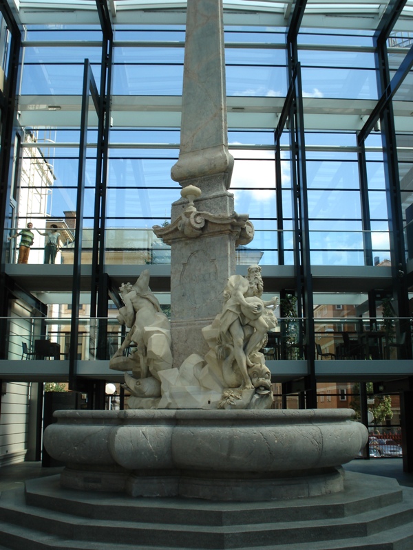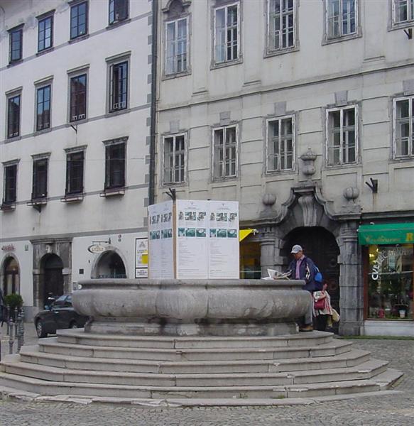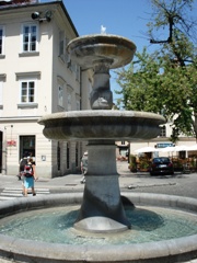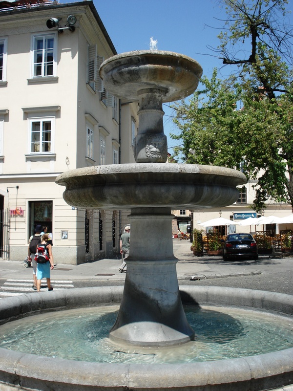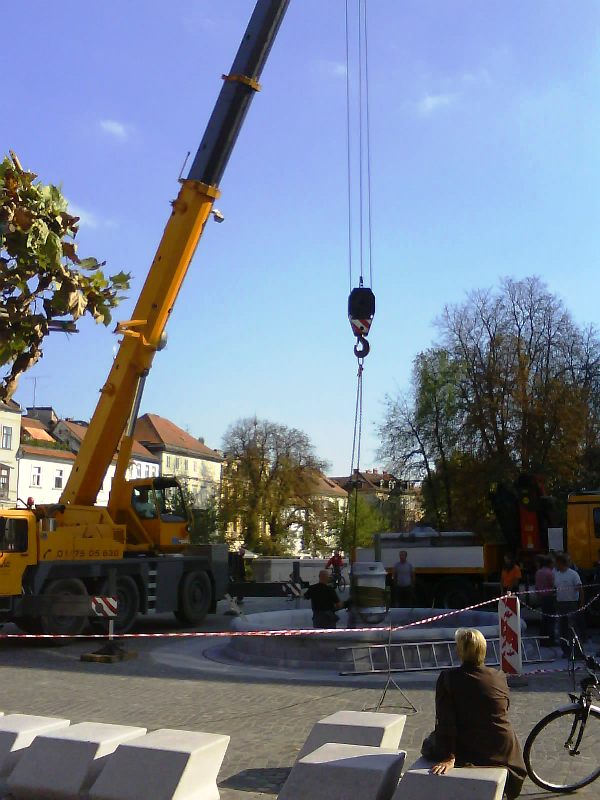 | Jeseni leta 2010 so zgornji del vodnjaka s Krekovega trga spet združili z obnovljenim na Novem Trgu. |