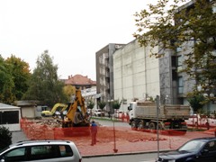 ogromno gradbeno jamo za nov prizidek, v letu 2008 pa že dobiva nove