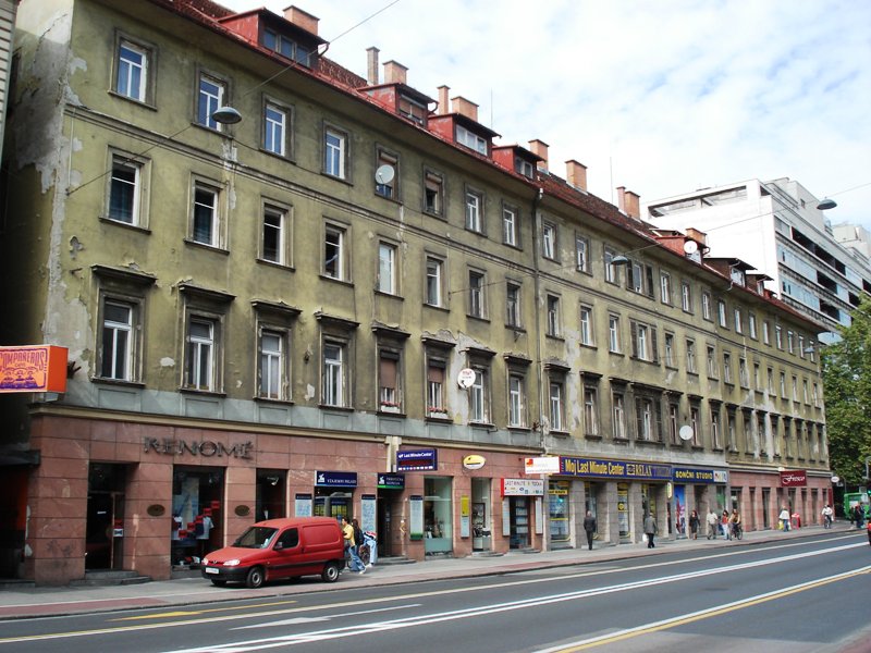 Slovenski cesti 51, na Prešernovi kar nekaj hiš, na Kongresnem