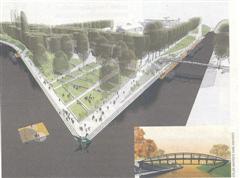 račun parkirišč ob Ljubljanici, kjer je sedaj pločnik. |