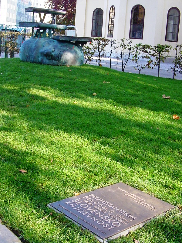 slovenskim protestantskim piscem v Parku slovenske reformacije. |