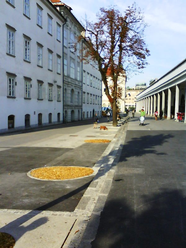 sedaj lepo tlakovana, vendar bi kroge lahko bolj povdarili z npr.