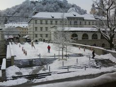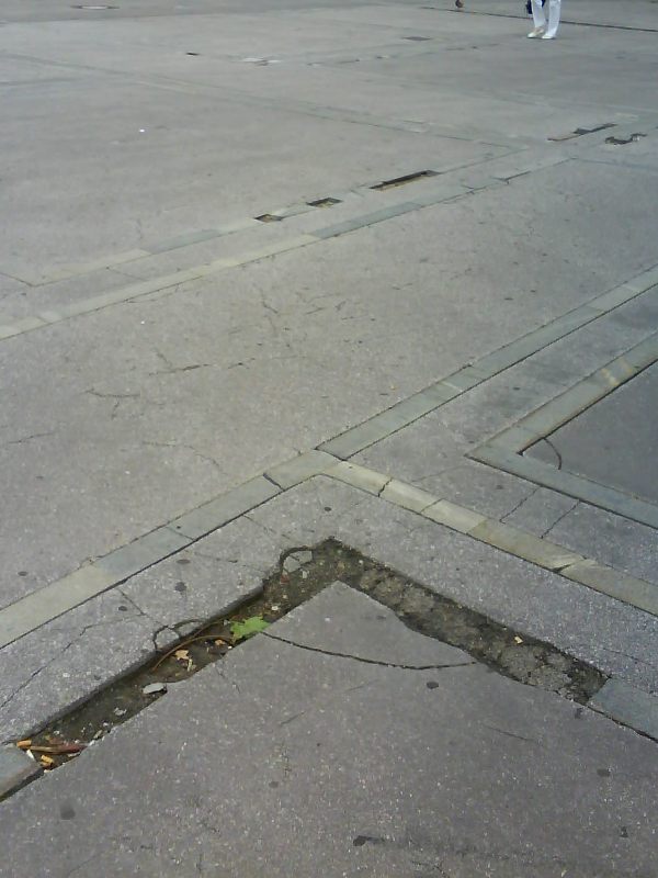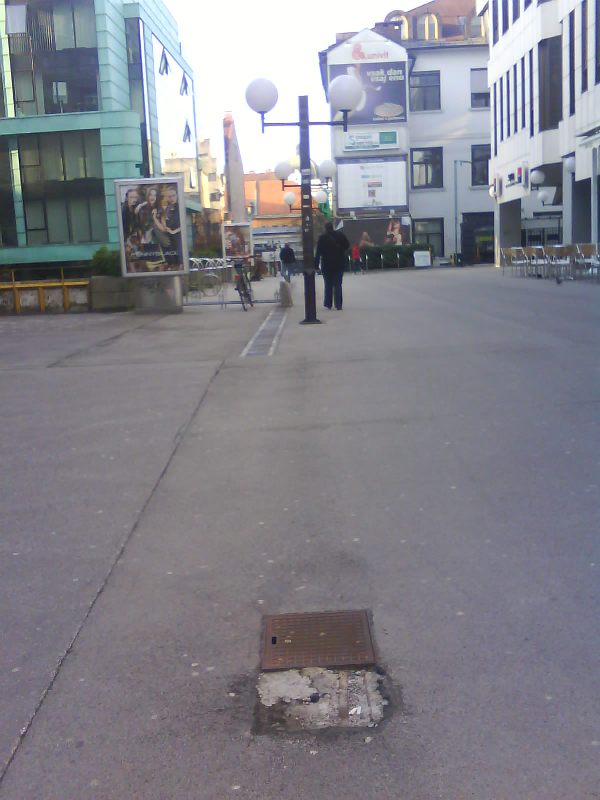 | Na ploščadi Ajdovščina med hotelom Union in SKB banko manjka luč, ob Slovenski in Dalmatinovi pa so poškodovani tlaki. |