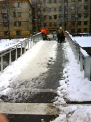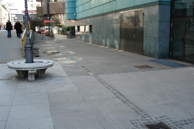 nevaren, ker steklene površine drsijo in ni držal ob stopnicah. Tudi odvodnjavanja pri novem mostu niso uredili. |
