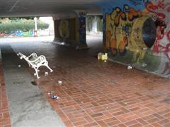 poseda predvsem mladina, čez dan pa klošarji, je potrebno, zlasti še ob koncu tedna, pogosteje