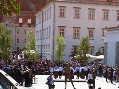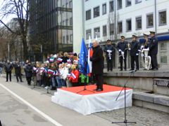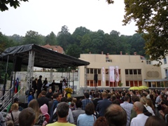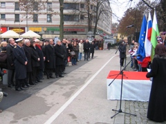 spominsko slovesnostjo pri spomeniku 24 talcev pri Poljanski gimnaziji. Slovesnosti se je udeležilo približno 200