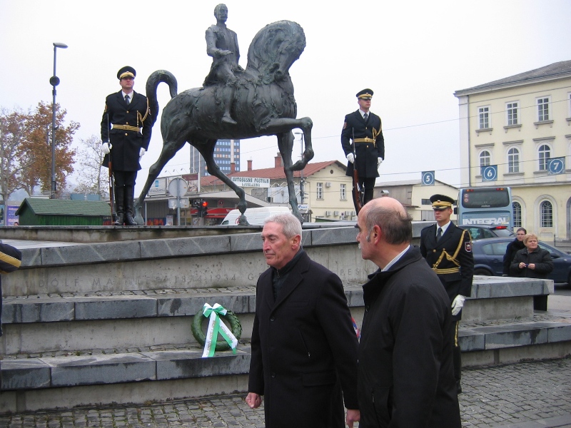 Miha Grobelnik. K spomeniku sta vence položili delegaciji MOL in
