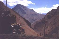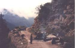človeka ali katere od svetih živali: krave, kače ali opice. Danes se glede tega razmere spreminjajo. Starodavni kastni sistem, ki človeka že ob rojstvu zapečati in omeji na krog ljudi iz iste kaste in na poklic, ki ga ta kasta opravlja, ne glede na zmožnosti in stremljenja, preplavlja svobodomiselnost mladine, ki išče vzore na zahodu. Vedno več je porok iz ljubezni in ne odrejenih od staršev, tudi hčere sedaj skrbijo za svoje starše in jim omogočajo udobno starost. Če se vrnem h gorskim cestam, so nekatere prava mojstrovina: vklesane so v čisto skalo, sicer enopasovnice, a z odstavnimi pasovi. In ko se tvoje vozilo umika drugemu vozilu, lahko zreš v prepad pod sabo in se tolažiš ob misli, da ti je namenjeno živeti. Ampak človek se vsega navadi in tudi pogled na nepredstavljive globine sčasoma vzljubiš kot del panorame. Medtem ko vladata na ravninskih cestah hitrost in zmeda, gorske ceste s svojo neizprosnostjo iz voznikov izzovejo strpnost in solidarnost. Neštetokrat je treba voziti vzvratno, neštetokrat čakati, če se kaj popravlja... čas se ustavi, "mudi se mi!" nima pomena. Življenje se okrene po svoje. Obrazi delavcev včasih prikličejo v človeku sočutje. A pomilovanja ti ljudje nočejo, so ponosni v svoji prepuščenosti v usodo. Pri nas bi že zdavnaj grbančili obraze in črno gledali, a tam se črne oči svetijo v volji do preživetja. Ljudje z rokami čistijo kanale ob cestah, največkrat sta zaradi nezadostne prehrane potrebna dva, da dvigneta lopato - drugi na nasprotni strani povleče na lopato privezano vrv, ko je potrebno dvigniti in tako pomaga prvemu. Na hrbtih žensk spijo otroci, medtem ko matere prenašajo težko kamenje. Zime so v Himalaji neizprosne in snežni zameti velikokrat onemogočijo promet. Med letom so prometne povezave javnih prevozov zelo dobre, avtobusi pa vedno polni, saj Indijci veliko potujejo in romajo po svoji deželi. Tudi v najbolj odročne kraje pelje avtobus dvakrat na dan, Ljudje ob vsem tem ohranjajo veselje. V vseh vozilih z največjo jakostjo igra radio z indijsko pop sceno, ob cestah pa vedrijo napisi za zmanjšanje hitrosti: "I love you baby, but not so fast!" (Rada te imam ljubi, ampak ne tako hitro!), "Be patient, I'm waiting for you!" (Bodi potrpežljiv, saj čakam nate!), "Drive slow for ling life!" (Vozi počasi za dolgo življenje!)... Velikokrat naletiš na vdore, prednje pa postavijo obvestila kot je npr. to: "Be patient, the earth is still mooving!" (Bodi potrpežljiv, zemlja se še premika!). Poleg zanimivih napisov, ki ne prepovedujejo, ampak nagovarjajo, so skoraj za vsakim voglom postavljena znamenja hindujskim bogovom, bolj ko pa te vodi pot proti Kitajski - Tibetu, več je budističnih svetih znamenj: "santi stupa", nekakšni spomeniki razsvetljenemu - Budi in znamenja miru, ter razobešene molilne zastavice, ki plapolajo v vetru in molijo za mir in vse dobro na svetu. Na prelazih se vozniki skoraj vedno ustavijo ob znamenjih bogov, svetih sil in se priporočijo za srečno nadaljevanje poti. Sveti kraji so v Indiji nekaj, kar še ni pozabljeno in je čaščeno od vseh, ne glede na pripadnost različnim veram. Ceste so del indijskega vsakdana, kakor se zdijo nemogoče, pa te pripeljejo kamorkoli, tudi v najbolj odročne gorske vasice. Včasih se voziš in voziš in se ti zazdi, da zadnje naselje sploh ne obstaja, vedno znova se ti odpirajo pogledi na vasice in mesteca, ki dajejo divji pokrajini čarobni učinek. Opozarjajo na človekovo prilagodljivost in iznajdljivost. Te odporne vasice pa se končajo šele pod najbolj belimi vrhovi, kjer lahko domujejo le še bogovi. Treking Po Indiji, deželi barv in raznolikosti, nas niso vodile le ceste, ampak tudi navidezna razpotja, ki vodijo po čudoviti gorski pokrajini. Odpravili smo se na dva trekinga. Na prvem smo premagali prelaz Bhaba pass (4890 m), na drugem pa prečkali nenavadna področja na višini med 4000 in 5000 m, brez kakršnegakoli zelenja, kjer so na površje prodrle geološke plasti kamenim še iz časa oceana Tetis, ki se je od zahodne Evrope do Daljnega vzhoda raztezalo pred približno 150 milijoni let. Te kamenine mimoidoče presenečajo z raznovrstnimi fosili školjk, polžev in okostij živali.Treking je vrsta planinarjenja, ko pohodniki največkrat najamejo vodiča in mule ali osle, ki nosijo hrano in prtljago. Veliko se jih odloči tudi za kuharja, pridruži pa se mu še njegov pomočnik. Le redki se odločajo za samostojno planinarjenje po Himalaji, saj so zemljevidi zelo slabi, doline pa se cepijo in vejajo v neskončnost, tako da je orientacija za neizvežbano oko zelo težka. Takšni podvigi so zelo tvegani in se večkrat končajo z izginotjem oseb, ki odtavajo v neznano. Mi smo se odločili za popolno spremstvo in izkazalo se je, da je bila naša odločitev dobra. Potem, ko človek hodi pet do sedem ur na veliki višini (od ok. 3000 do ok. 5000 m), je zelo izčrpan in si želi le umik pred žgočim višinskim soncem, kuhanje pa ti po dnevni turi še ne pamet ne pade. Vedno so nas ob prihodu na prostor kampiranja postregli s čajem in nam skuhali dobro ter raznoliko večerjo, večinoma indijske, kitajske ali nepalske jedi, tako da so potovanje spremljali še avtentični okusi. Šotore lahko popotnik prinese sam ali pa si jih sposodi pri agenciji, pri kateri najame vodiča in ostale. Zanimivo je bilo to, da smo pričakovali le nekaj ljudi v spremstvu, zbralo pa se jih je več. kot je bilo nas: vodič (včasih se mu pridruži še pomočnik), kuhar, pomočnik kuharja, mulovodec (ki skrbi za delavne živali, ki potrpežljivo nosijo na svojih hrbtih tudi do 80 kilogramov), pomočnik mulovodca. To, da plačaš več ljudi, kot jih potrebuješ, je v Indiji običajno, saj je delavne sile na pretek, ljudje pa se na vse načine znajdejo pri zaslužku za vsakdanji kruh. Kljub temu je takšna "odprava" za naše razmere še vedno poceni. Znesek, ki smo ga odšteli za prvi petdnevni treking, z vsem tem spremstvom vred, je bil manjši, kot bi