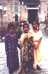 pa se ljudi bojijo in opazujejo dogajanje z varne razdalje.V gorski vasici Sarahan pa smo se srečali z bolj nenavadnim obredjem. Tam stoji tempelj, posvečen Kali, boginji maščevanja in kaznovanja. Povedali so nam, da so tu ob posebnih praznikih vse do 19. stoletja opravljali krvne daritve in zaklali za pomiritev boginjine jeze kokoši, ovce ali koze.Takšno čaščenje bogov je bilo iz obredja nam bližjih narodov, npr. Grkov, pregnano že pred nekaj tisočletji, nadomestilo pa ga je simbolično žrtvovanje, ki se ohranja tudi danes v krščanskem obredju. Zadnji dan smo stopili v tempelj boga Krišne v mestu Matura, južno od Delhija, kjer je bilo fotografiranje strogo prepovedano, ob vstopu pa so nas pregledali vojaki. Ta tempelj je še posebej varovan, ker hindujci verujejo, da se je tu rodil Krišna. V osrednjem prostoru, kjer so še danes vidni odtisi Krišnevih stopinj, se vsako dopoldne zbirajo ženske. Prepevajo in plešejo, igrajo na inštrumente, ploskajo in vabijo medse vsakogar, ki vstopi v prostor. Hrana Vsi večji templji nudijo obiskovalcem obrok hrane. Za nas, nenavajene in občutljive želodce, je takšna, ne preveč sveža hrana, malo tvegana, saj v Indiji, če človek ne pazi dovolj, hitro nastopijo nevšečnosti s prebavo. Preveč previden pa človek spet ne sme biti, saj se s tem odpove mnogim zanimivim okusom, ki jih vsebuje indijska hrana. Znane so slaščice, ki pa so zelo sladke, tako da so včasih okusi težko razločljivi. Pri pripravi jedi uporabljajo veliko začimb: čili, ingver, poper, curry, kardamom, klinčke, cimet, koromač, kumin, meto, moškatni orešek, žafran in mnoge druge, ki jih pri nas ne poznamo. Okus v hrani je čarovnija začimb, dobro pa je, da se navadiš na močne in pekoče okuse, saj je takšnih večina jedi. Indijci jedo