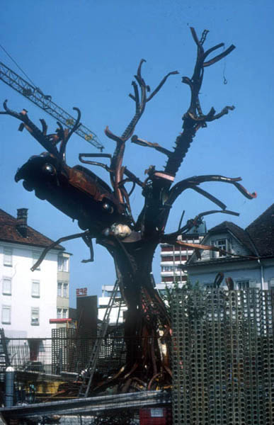 Okrašeno drevo iz železnih ostankov, blizu Heerbrugga.
