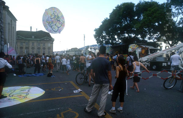 | Naletela sva tudi na manjši rave žur, ki je bil priprava na bližajoči se Street parade. |