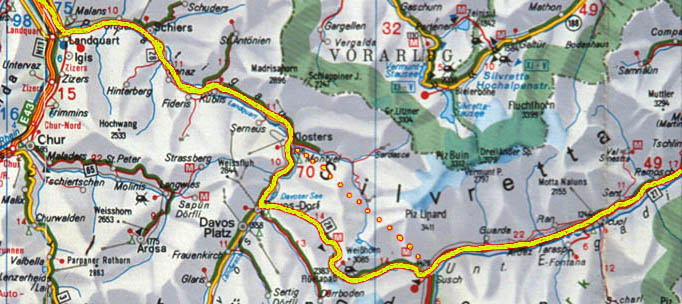 sva videla tudi po imenih mest, npr. Ftan, Zernez, Sent, Scuol, Ardez, ... vrhovom pa pravijo Piz. Peljala sva se le po nemško in