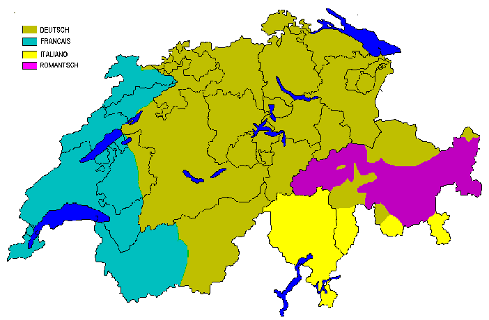 Še nekaj zanimivosti o Švici: razdeljena je na 24 (+2) kantonov (nekakšne velike občine), nimajo enotnega jezika, ampak 4 uradne - nemščino, francoščino,