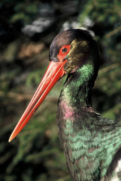 se od bolj poznane bele štorklje loči po črni barvi vratu, hrbta in oprsja.