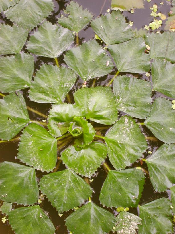 listi, ki so rozetasto razporejeni. Listni peclji so mehurjasti. Iz posameznih