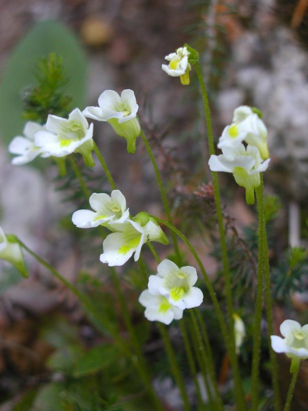 Nežna rastlina s pritličnimi žlezastimi in lepljivimi listi, ki so past