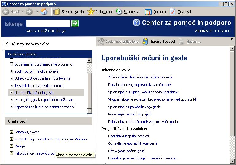 - Ikone (nazaj, naprej, osveži, domov, priljubljene-pokaži