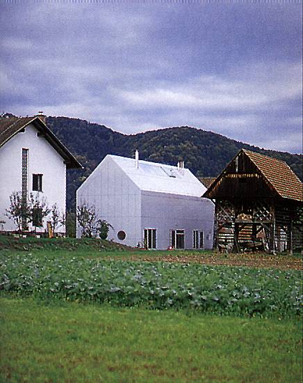 Author¢ s architecture (Fig. 7 and 8), house Acman in Grize (Slovenia), architect Nande Korpnik, is significant example of high artistic and aesthetic design with strong charge of individuality and absolute identity. Design of the house is based dimensionally and proportionally on double hayrack besides, where the language of traditional architecture has been transformed and interpreted in new, modern, high-tech language.