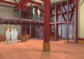 The buildings history and its budget must be taken into consideration when finding a functional and purposeful solution. One would need to consider the multi-functional possibilities of a "cultural shed", as local events, meetings, visitor activities and classes should be able to be housed here. Furthermore wine seminars , exhibitions and family festivities should be possible. A Diploma submission at the University of Stuttgart resulted in the development of the first concrete vision for a design, which was then discussed with the council. The pre-design was based on the council’s early visions, in which the extension (lobby and entrance, stairway to gallery) has been designed in a steel/glass construction. In many discussions with the conservation group and the council, the building’s extension, with ist intruding glass structure, was modified. Construction should be realised in 2002. Existing structure, goal orientation, planning structure and plans will be presented and discussed.