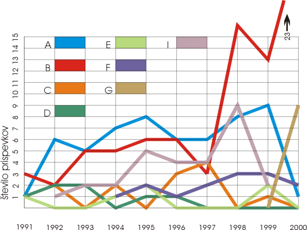 Z ozirom na zastopanost prispevkov (od A do I razvrščenih področij) na posameznih konferencah bi bilo mogoče analizirati zanimanje strokovnih in znanstvenih krogov za posamezna področja, ki kažejo trend naraščanja. Za področje teorije in prakse bi bilo mogoče trditi, da sta med prispevki številčno najbolj zastopani, objav
