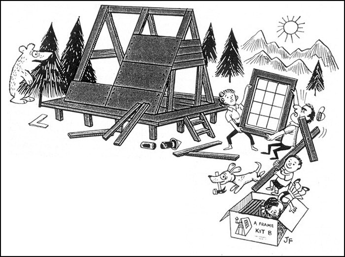 Po drugi svetovni vojni se je mnogo Američanov znašlo v položaju, ko so gradili ali iskali počitniške hiše. Enakostranični trikotnik kot konstrukcijsko načelo je bil najbolj uporabljan.