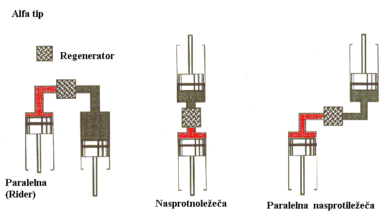 Vsak bat ima svoj cilinder. Vsaj en valj deluje v vročem okolju in tesni neposredno na okolico stroja, kar ima za posledico probleme tesnjenja. Zaradi tega uporabljajo ta tip izvedbe pretežno za hladilne naprave in za toplotne črpalke, kjer so relativno nizke delovne temperature.